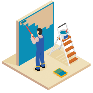 • در نهایت مرحله انجام رنگ کاری ساختمان با رنگ پلاستیک شروع می‌شود. می‌توانید رنگ مورد نظرتان را با ابزار مناسب نقاشی مثل غلطک و یا قلم موی مخصوص روی دیوار، سقف و یا دیگر سطوح بکشید.